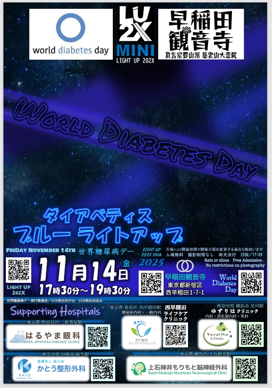 2025年11月14日(金曜)に早稲田観音寺にて行われる「世界糖尿病デー」ブルーライトアップのサポーティングホスピタルになりました。